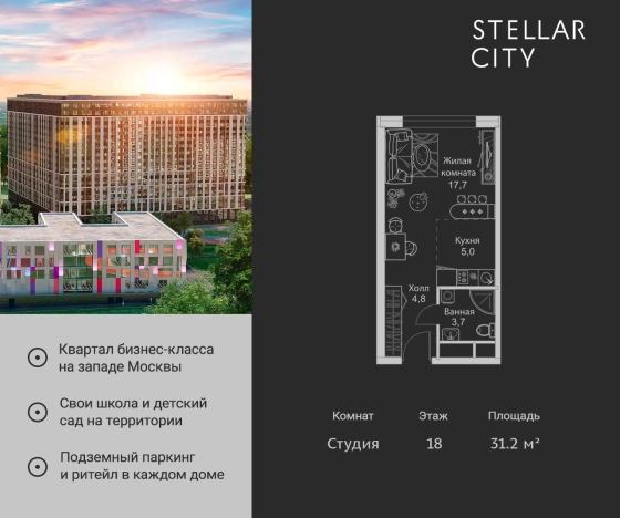 Жилой квартал состоит из 3 урбан-блоков, каждый из которых выполнен в своей стилистической концепции. В первом урбан-блоке предусмотрено 3 жилых корпуса переменной этажности: 18, 45 и 59 этажей. Они объединены стилобатом, в котором размещены инфраструктурные объекты. Архитектурный проект комплекса принадлежит знаменитому бюро СПИЧ. В основу архитек