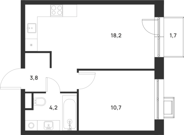 1-комн. квартира, 38,8 м², 12/17 эт.