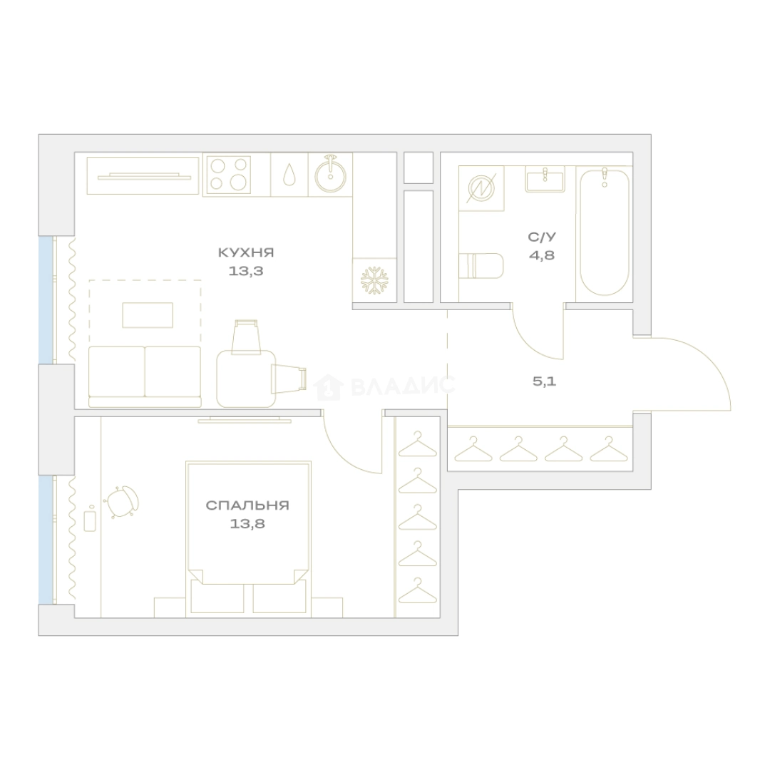 2-комн. квартира, 40,3 м², 21/17 эт.