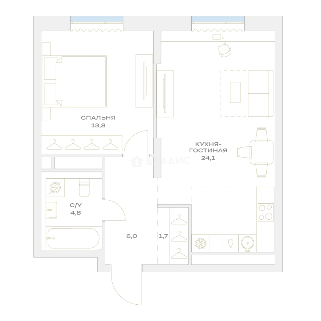 2-комн. квартира, 43,4 м², 9/22 эт.