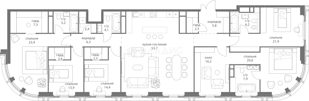 5-комн. квартира, 224,5 м², 14/19 эт.