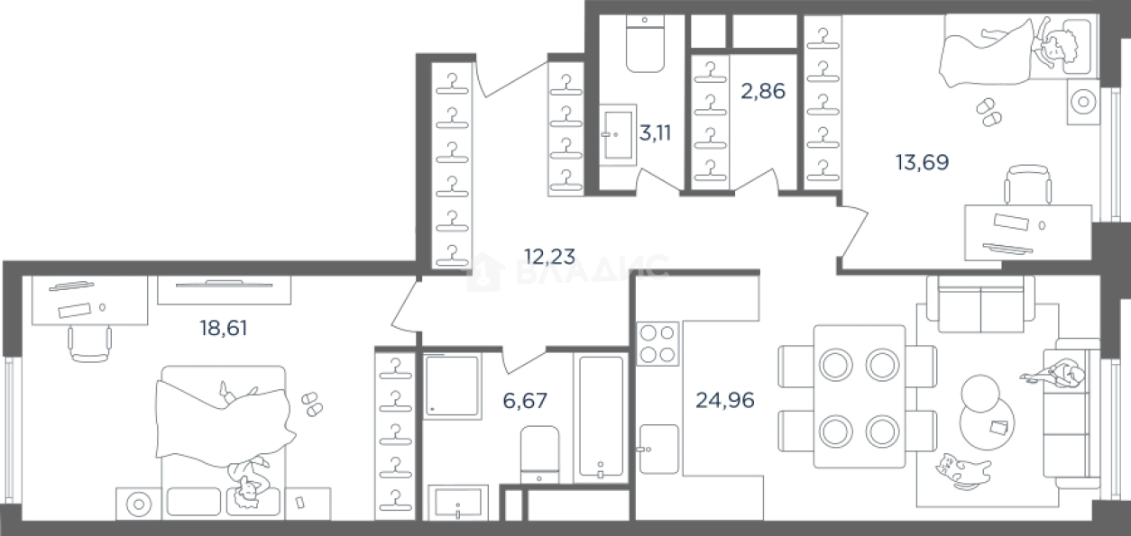В ЖК «HEADLINER» предложено множество планировочных решений: в наличии квартиры, как классического типа, так и европланировки. Сдаются они без отделки с высотой потолков 3,1 метра. Из окон открываются панорамные виды на «Москва-Сити» и Москву-реку.