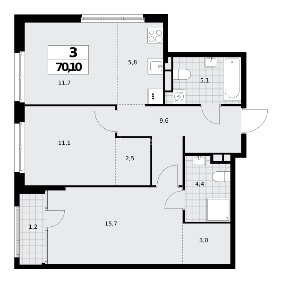 3-комн. квартира, 66,4 м², 7/8 эт.