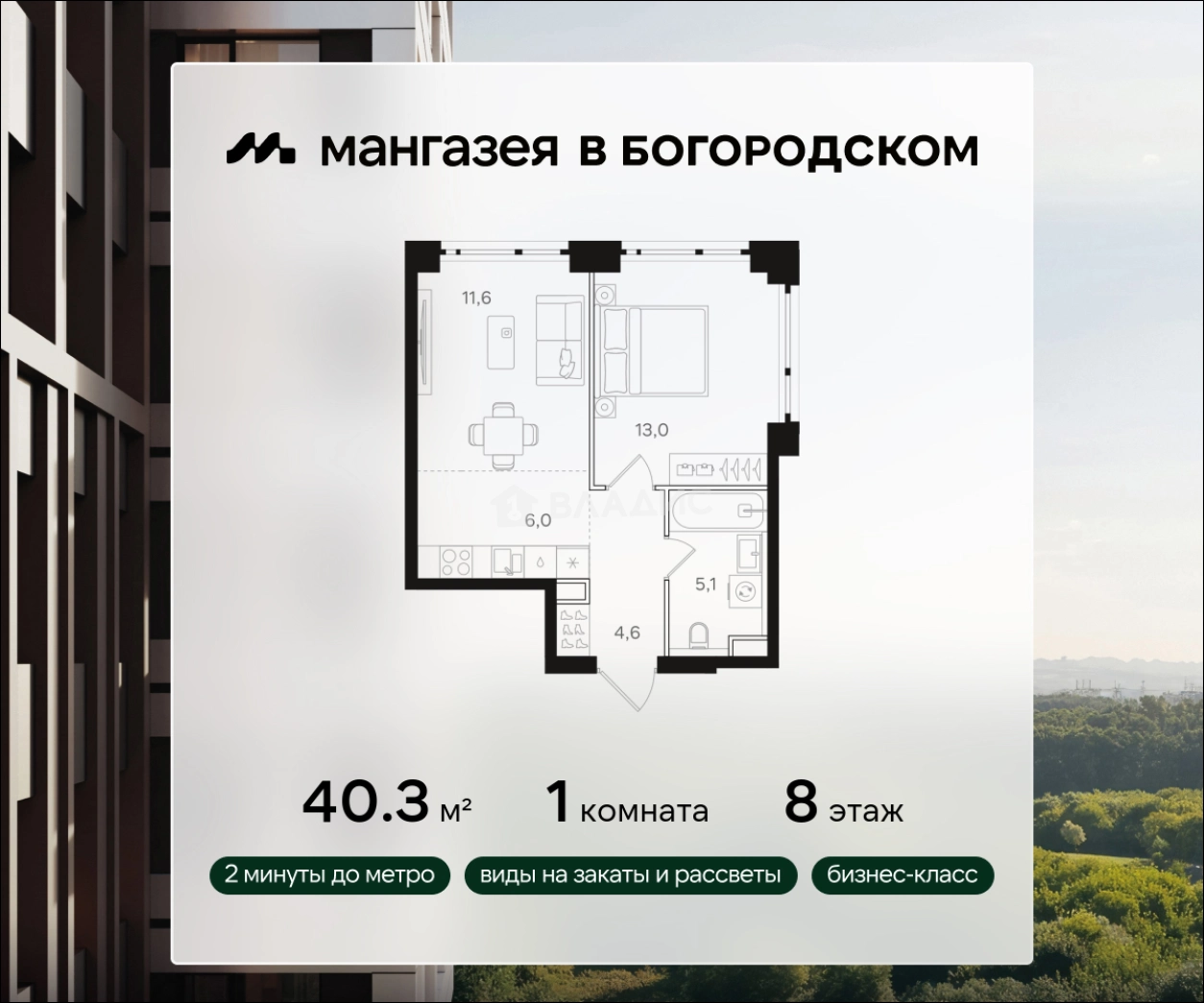 В жилом комплексе представлены планировки от студий до 4-комнатных квартир как классического типа, так и европланировки. Сдаются они без стен, высотой потолков от 2.95 до 3.25 метров и увеличенными окнами. Имеются квартиры с мастер-спальнями и террасами, с видами на Останкинскую телебашню, Измайловский парк и парк Сокольники.