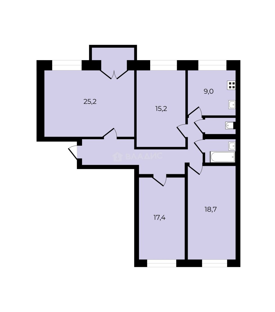 1-комн. квартира, 34,6 м², 7/25 эт.