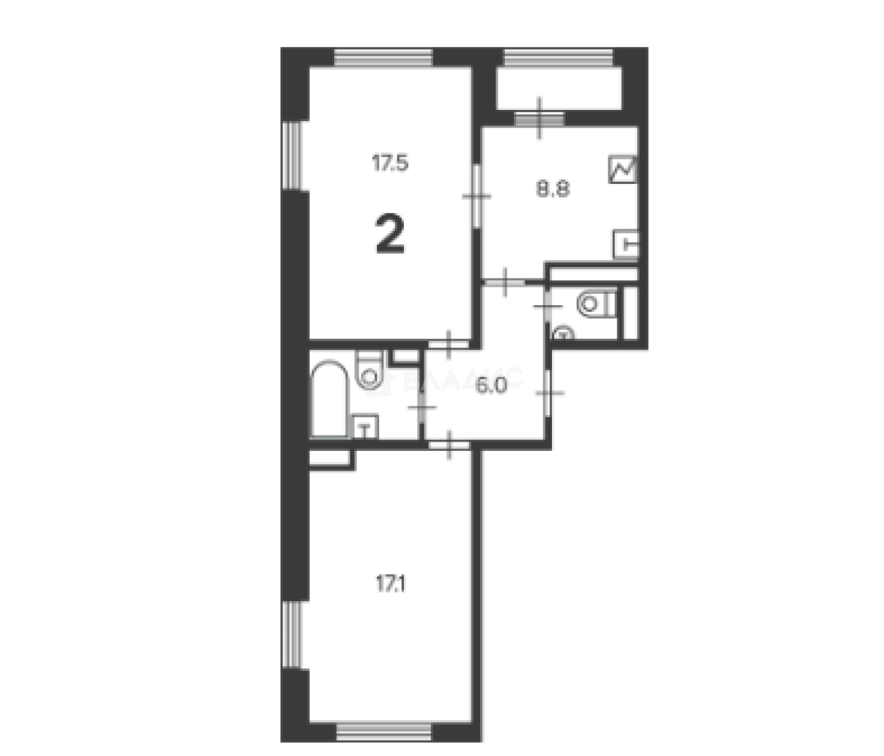 2-комн. квартира · 54.2 pм² · 12/17 эт.