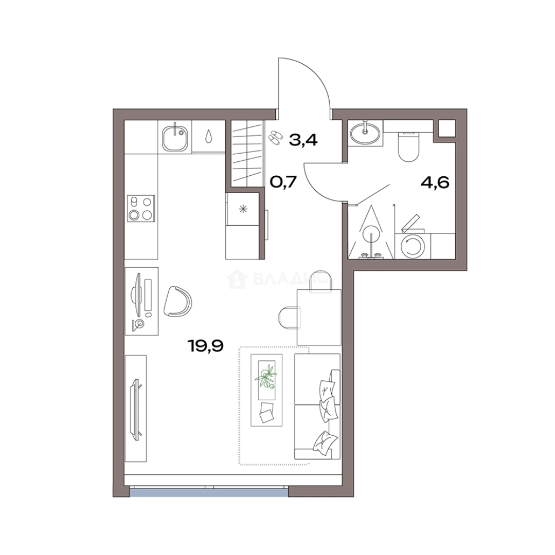 Студия · 28.6 pм² · 2/7 эт.