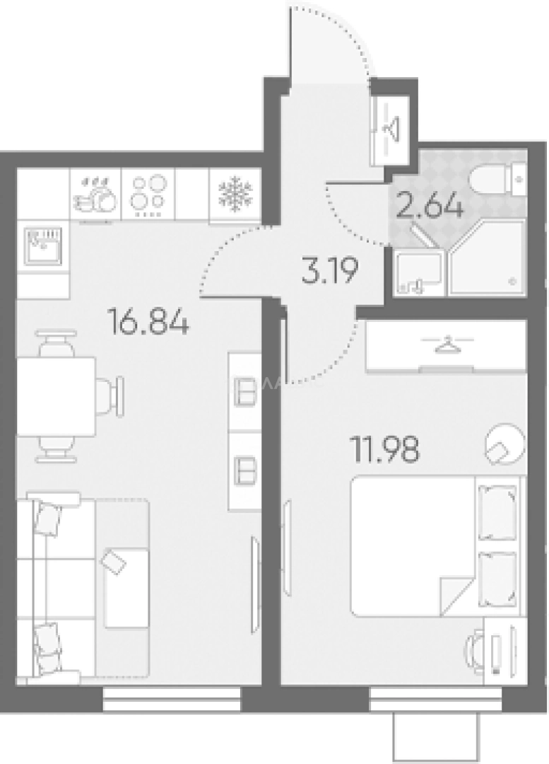 2-комн. квартира, 34,7 м², 18/25 эт.