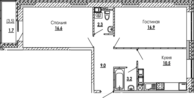 2-комн. квартира·35,3 м²·2/9 эт.